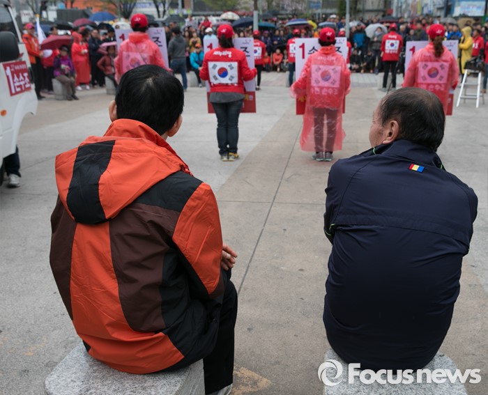 (부산=포커스뉴스) 3일 오후 부산광역시 사상구 광장로의 한 대형마트 앞에서 시민들이 손수조 새누리당 사상구 후보 지원유세를 지켜보고 있다.