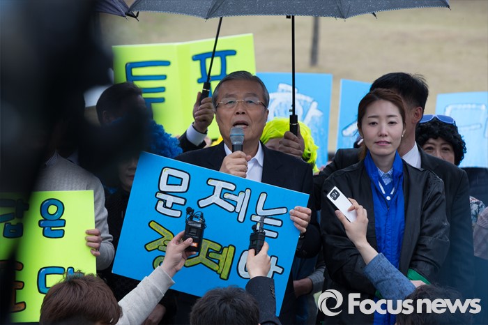 (서울=포커스뉴스) 3일 오후 서울 강서구 방화근린공원 일대에서 김종인 더불어민주당 비대위 대표 겸 선대위원장이 진성준 강서을 후보의 지지를 호소하고 있다.