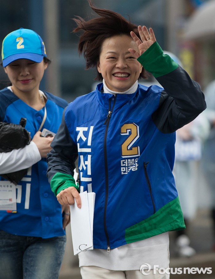 | △ 진선미 더민주 강동구갑 후보, '지금 달려갑니다' |