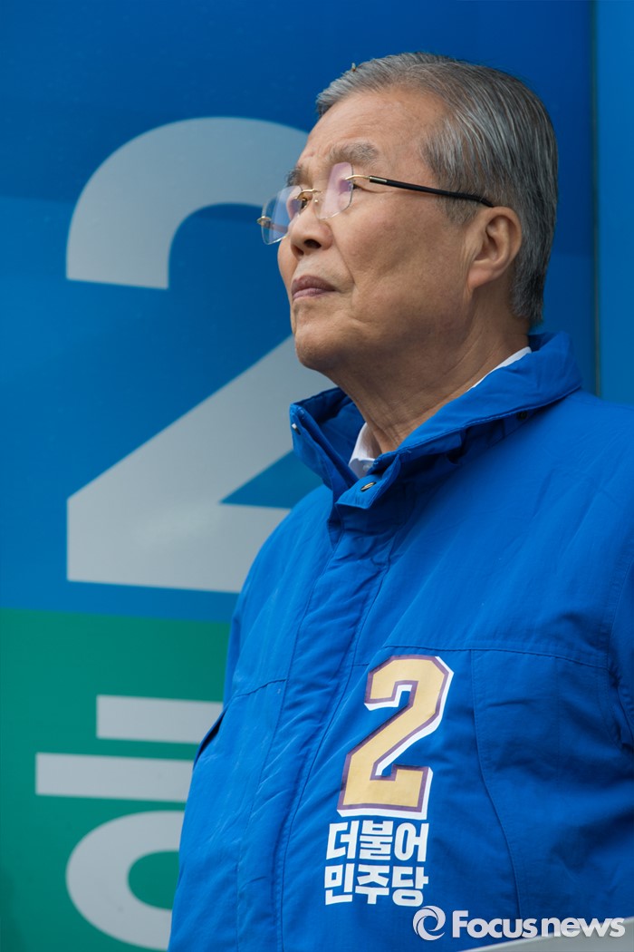(서울=포커스뉴스) 3일 오후 서울 강서구 화곡역 사거리에서 김종인 더불어민주당 비대위 대표 겸 선대위원장이 강서갑 금태섭, 강서병 한정애 후보와 함께 유세를 하고 있다.