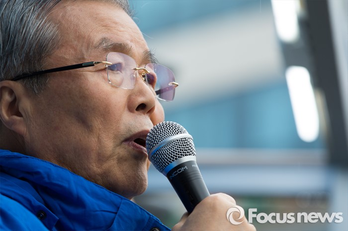 (서울=포커스뉴스) 3일 오후 서울 강서구 화곡역 사거리에서 김종인 더불어민주당 비대위 대표 겸 선대위원장이 강서갑 금태섭, 강서병 한정애 후보와 함께 유세를 하고 있다.