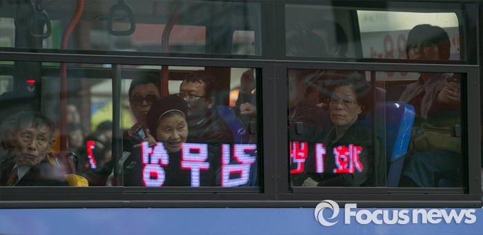 (부산=포커스뉴스) 부산광역시 중구영도구에 출마한 김무성 새누리당 대표가 3일 오후 부산시 영도구 남항시장 입구에서 유세를 하는 동안, 버스에 탄 승객들이 유세차량을 보고 있다.