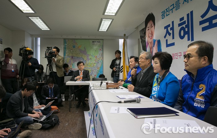 | △ 광진갑 선거캠프서 열린 더민주 중앙선대위회의 |