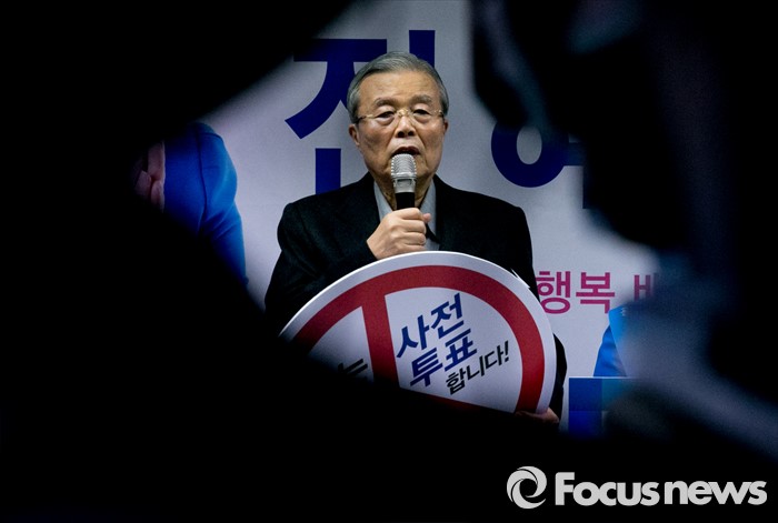 (서울=포커스뉴스) 4일 오전 전혜숙 더불어민주당 서울 광진갑 후보 선거사무소에서 중앙선거대책위원회의에 앞서 김종인(가운데) 비대위 대표 겸 선대위원장이 20대 총선 사전투표 독려 캠페인을 하고 있다.