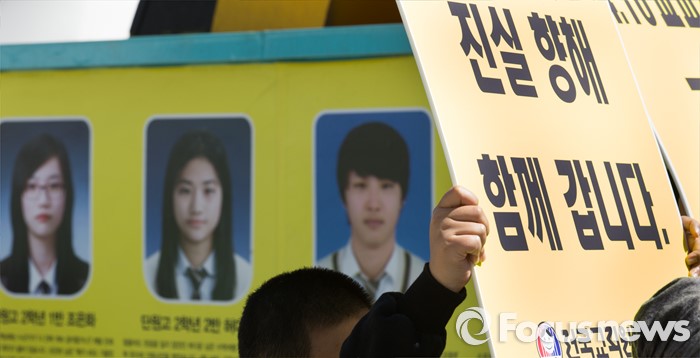 (서울=포커스뉴스) 4일 오전 서울 광화문광장에서 전국교직원노동조합 조합원들이 세월호 참사 2주기 공동수업 및 실천활동 선포 기자회견을 하고 있다.