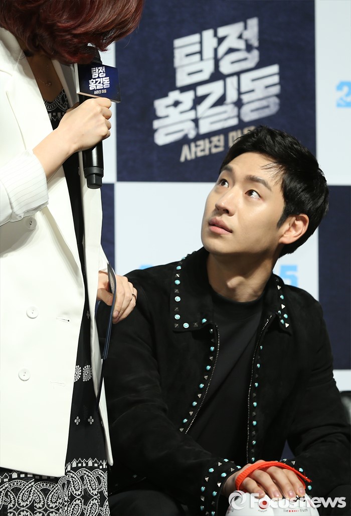 (서울=포커스뉴스) 4일 오전 서울 강남구 압구정 CGV에서 열린 영화 '탐정 홍길동 : 사라진 마을' 제작보고회에 참석한 배우 이제훈이 거짓말 탐지기를 이용한 질문을 받고 있다.
