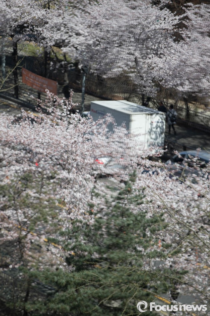 (서울=포커스뉴스) 하늘이 차츰 맑아지는 절기 '청명'인 4일 오전 서울 영등포구 윤중로 일대에 벚꽃이 활짝 피어 있다.