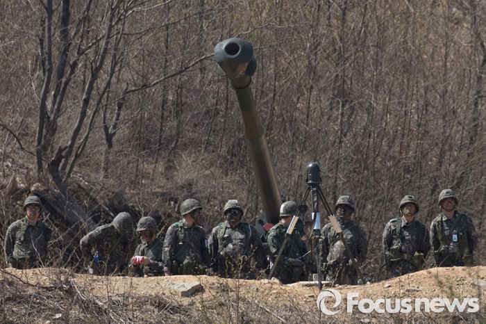 (고성=포커스뉴스) 4일 오전 강원도 고성 야촌리사격장에서 열린 '2016년 전반기 해상사격 훈련'에서 육군 8군단 포병대대 소속 장병들이 K-9 자주포가 사격을 지켜보고 있다.