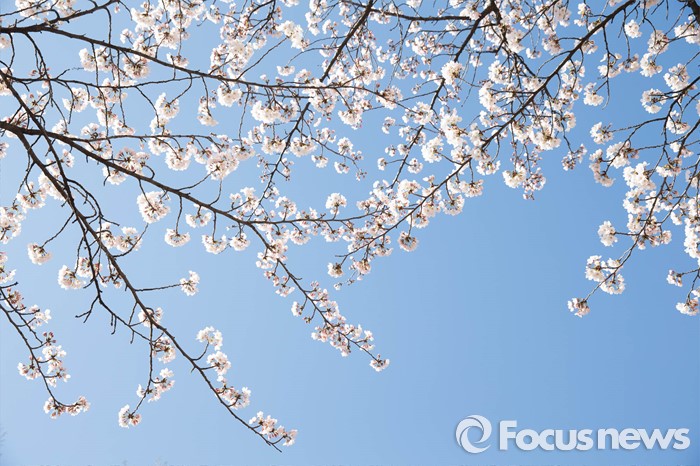 (서울=포커스뉴스) 하늘이 차츰 맑아지는 절기 '청명'인 4일 오전 서울 영등포구 윤중로 일대에 벚꽃이 활짝 피어 있다.