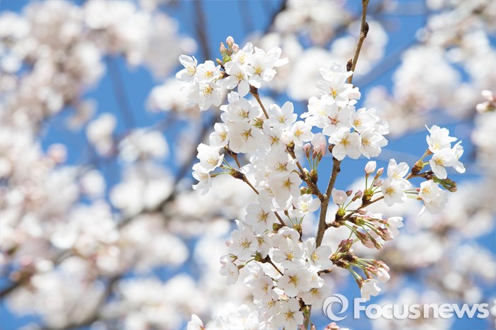 (서울=포커스뉴스) 하늘이 차츰 맑아지는 절기 '청명'인 4일 오전 서울 영등포구 윤중로 일대에 벚꽃이 활짝 피어 있다.