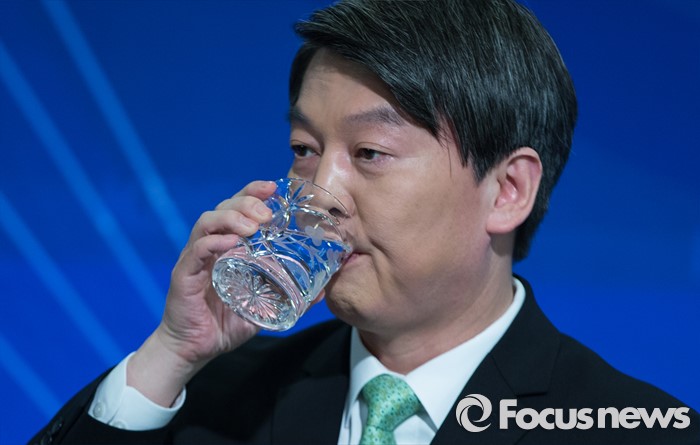 (서울=포커스뉴스) 안철수 국민의당 상임공동대표가 4일 오후 서울 종로구 세종문화회관에서 한국방송기자클럽 초청 토론회에서 물을 마시고 있다.