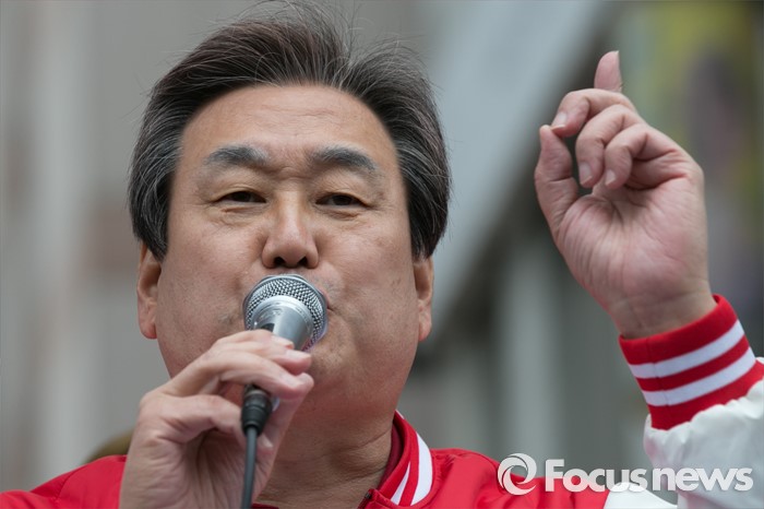 (김해=포커스뉴스) 김무성 새누리당 대표가 4일 오후 경남 김해시 내외로 외동전통시장 앞에서 이만기 김해을 후보 지원유세를 하고 있다.