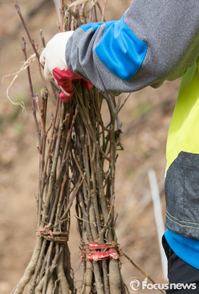 (세종=포커스뉴스) 김경환 국토교통부차관과 직원들이 식목일을 앞두고 4일 오후 세종시 금남면 영곡리 야산에서 나무심기를 하고 있다.