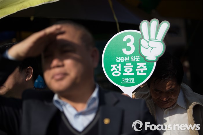 (서울=포커스뉴스) 4일 오후 서울 성동구 금남시장 로터리에서 정호준 성동구을 후보가 선거운동을 하고 있는 가운데 정 후보를 지지하는 유권자들이 기호 3번 피켓을 들고 있다.