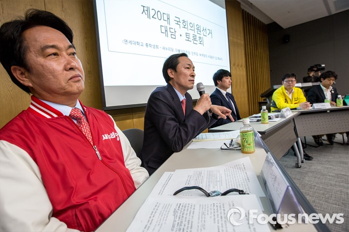 (서울=포커스뉴스) 더불어민주당 서대문갑 우상호 후보가 4일 오후 서울 서대문구 연세대학교에서 열린 '제20대 국회의원 선거 서대문갑 후보자 토론회'에 참석해 공약 발표를 하고 있다.