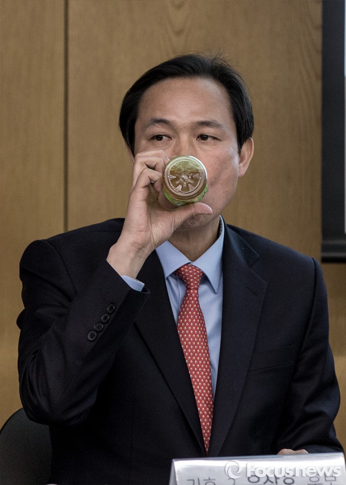 (서울=포커스뉴스) 더불어민주당 서대문갑 우상호 후보가 4일 오후 서울 서대문구 연세대학교에서 열린 '제20대 국회의원 선거 서대문갑 후보자 토론회'에 참석해 물을 마시고 있다.