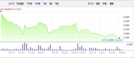 앞서 현대상선은 “유동성 확보 및 재무구조 개선을 위해 당사가 보유한 유조선사업부 매각을 포함한 다양한 방안에 대해 검토 중에 있다”며 “그렇지만 현재 이와 관련해 구체적으로 확정된 사항은 없다”고 4일 공시했다.주가흐름<사진출처=네이버 캡쳐>