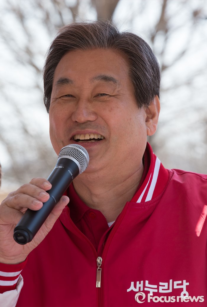 (대전=포커스뉴스) 김무성 새누리당 대표가 5일 오전 대전 유성구 족욕체험장 일원에서 진동규 후보의 지지를 호소하고 있다.