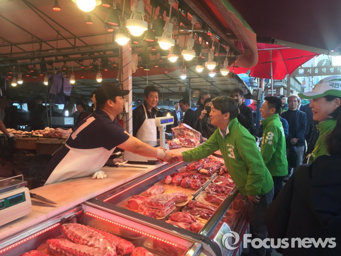 (서울=포커스뉴스) 4일 안철수 국민의당 공동대표가 서울 동대문구 제기동 경동시장을 방문해 동대문구(갑) 김윤 국민의당 후보의 유세를 지원했다.
