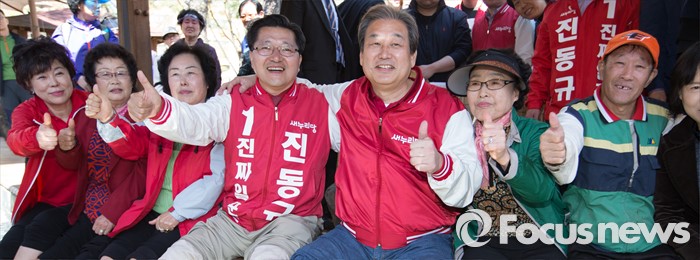 (대전=포커스뉴스) 김무성 새누리당 대표가 5일 오전 대전 유성구 족욕체험장에서 지원유세 중 족욕을 하며 진동규 후보의 지지를 호소하고 있다.