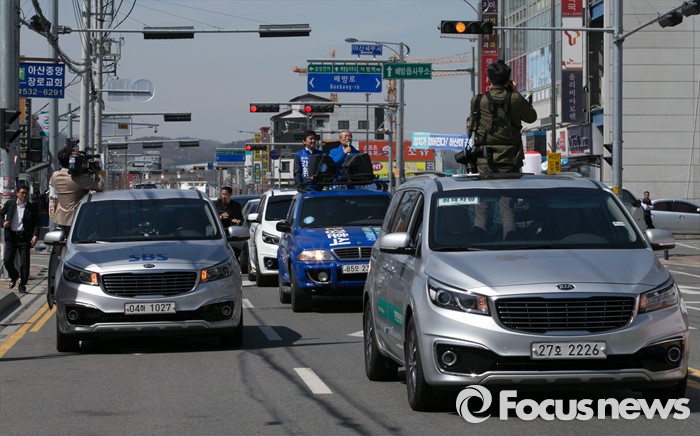 | △ 유세 차량 타고 거리 호소하는 김종인-강훈식 |