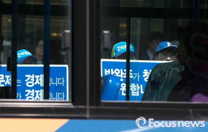 | △ 버스 향한 지지 호소 |