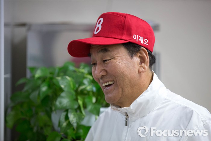 (서울=포커스뉴스) 은평을 무소속 이재오 후보가 5일 오전 서울 은평구 불광노인복지관에서 어르신들에게 점심배식을 하며 유세를 하고 있다.