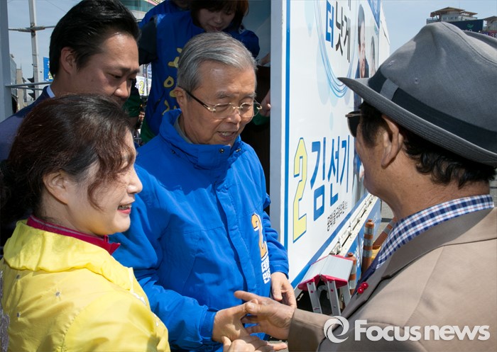 (평택=포커스뉴스) 5일 오후 경기도 평택역 앞 광장에서 더불어민주당 평택지역 합동유세를 마친 김종인 비대위 대표 겸 선대위원장이 시민 및 지지자들과 인사하고 있다.