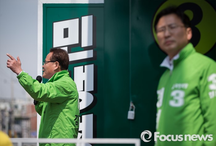 (의정부=포커스뉴스) 김경호 국민의당 의정부갑 후보(왼쪽)가 5일 오후 의정부시 태평로 제일시장 앞에서 선거 유세를 하고 있다.