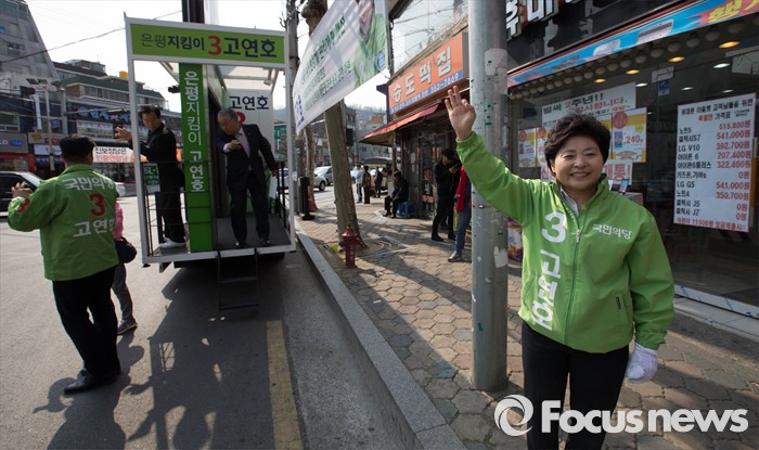 (서울=포커스뉴스) 국민의당 은평을 고연호 후보가 5일 오후 서울 은평구 갈현동 인근에서 유세를 하고 있다.