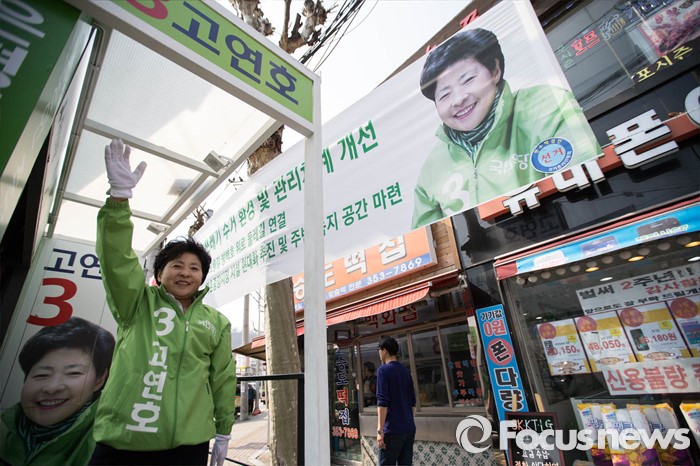 (서울=포커스뉴스) 국민의당 은평을 고연호 후보가 5일 오후 서울 은평구 갈현동 인근에서 유세를 하고 있다.