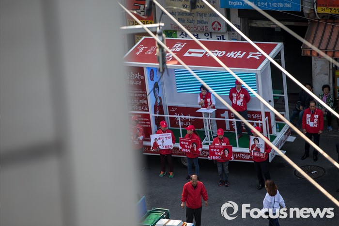 (서울=포커스뉴스) 황춘자 새누리당 용산구 후보가 5일 오후 서울 용산구 이태원동 일대에서 유세를하며 주민들에게 한 표를 호소 하고 있다.