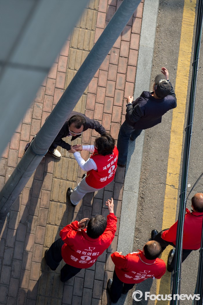 (서울=포커스뉴스) 황춘자 새누리당 용산구 후보가 5일 오후 서울 용산구 이태원동 일대에서 유세를하며 주민들에게 한 표를 호소 하고 있다.