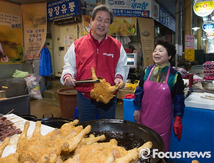 (세종=포커스뉴스) 김무성 새누리당 대표가 5일 오후 세종시 조치원읍 세종전통시장을 방문, 통닭을 튀기고 있다.