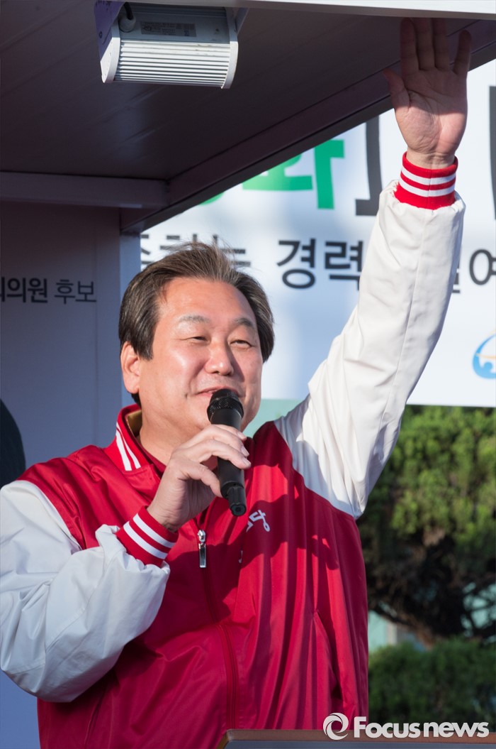 (세종=포커스뉴스) 김무성 새누리당 대표가 5일 오후 세종시 조치원읍 조치원역 앞 교차로에서 시민들에게 인사를 하고 있다.