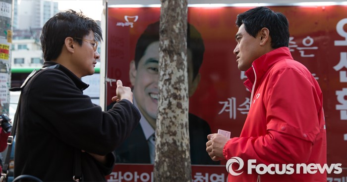 (서울=포커스뉴스) 5일 오후 서울 관악구 김한의원 앞에서 오신환 새누리당 관악구을 후보가 선거유세를 하고 있다.
