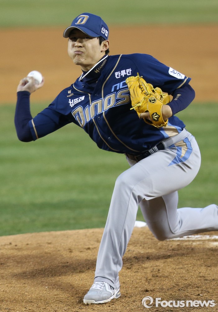 (서울=포커스뉴스) 5일 서울 잠실구장에서 열린 2016프로야구 NC-두산 경기에서 2회말 NC 선발투수 이태양이 투구하고 있다.