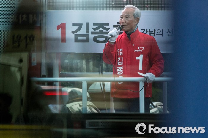 (서울=포커스뉴스) 20대 총선 출마한 김종훈 새누리당 강남을 후보가 5일 오후 서울 강남구 개포주공1단지아파트 인근에서 유권자들에게 지지를 호소하고 있다.