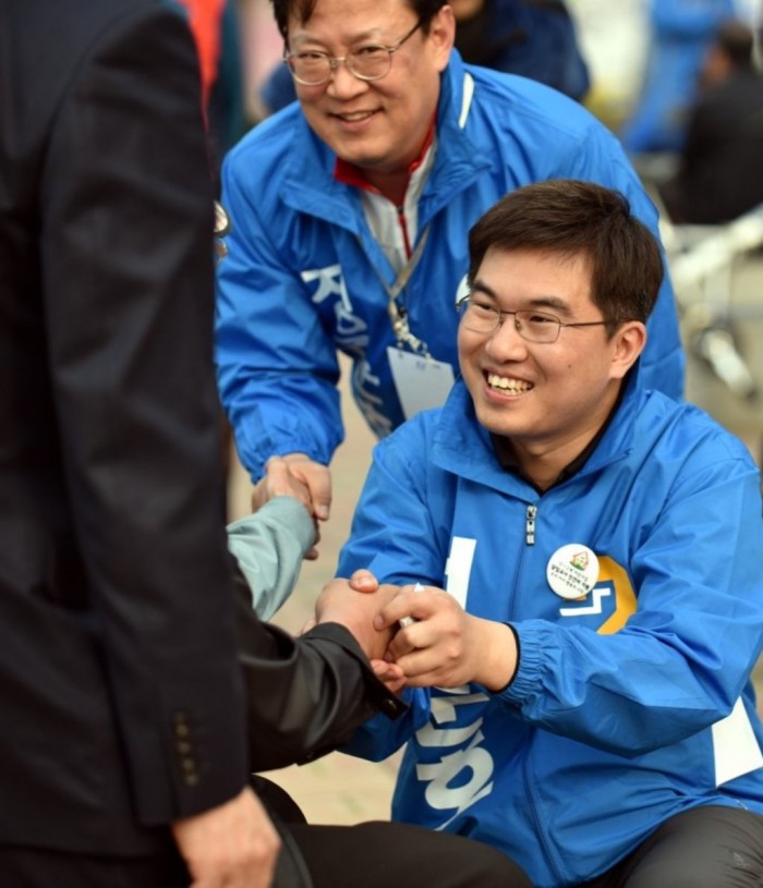 정 후보가 천정배 후보에게 요구한 세 질문은 △총선에서 천정배 후보께서 발굴한 뉴DJ는 누구인지 △호남정치 복원과 뉴DJ발굴이 김대중 전 대통령의 시대정신과 정치적 성과 계승 여부와 열린우리당 시절 대북특검에 대한 침묵 이유 △정치지도자의 일관성과 소신을 지키고 있는가 등이다.4.13 총선에서 광주 북갑에 출마한 정준호 더불어민주당 후보 <사진출처=정준호 후보 트위터>