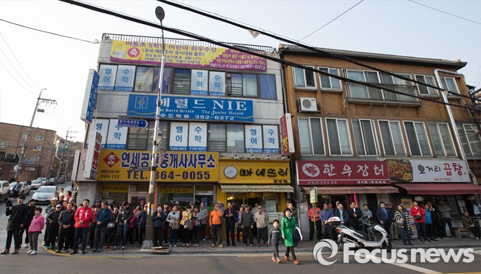 (서울=포커스뉴스) 5일 오후 서울 서대문구 충현동 인근에서 시민들이 새누리당 서대문갑 이성헌 후보의 유세를 지켜보고 있다.