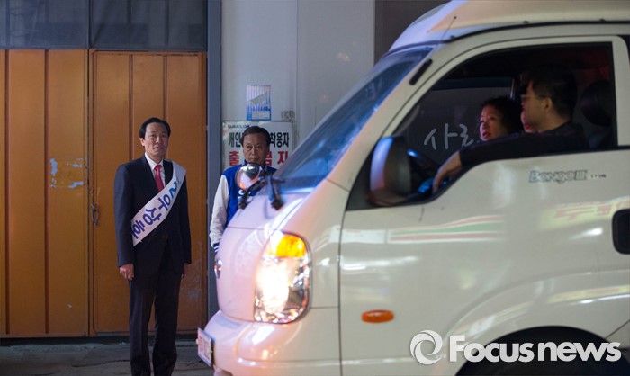 (서울=포커스뉴스) 5일 오후 서울 서대문구 아현역 인근에서 더불어민주당 우상호 서대문갑 후보가 시민들을 만나 유세를 하고 있다.