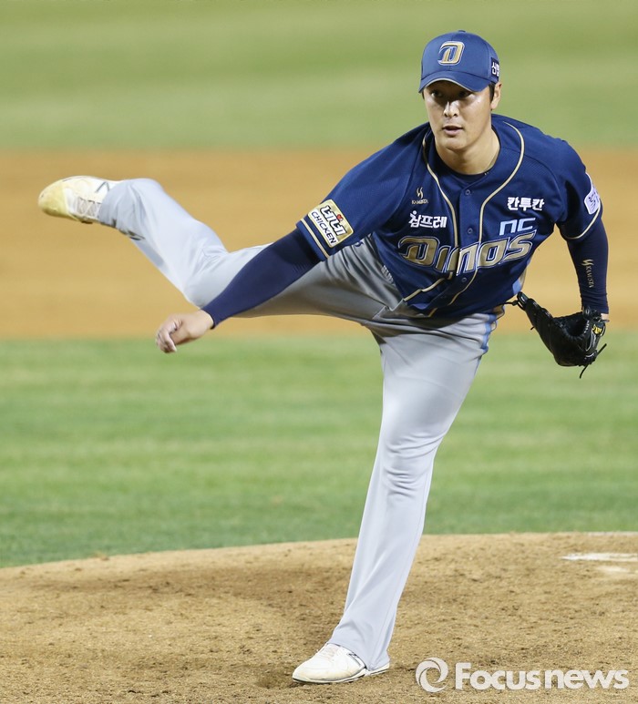 (서울=포커스뉴스) 5일 서울 잠실구장에서 열린 2016프로야구 NC-두산 경기에서 NC 투수 박민석이 투구하고 있다.