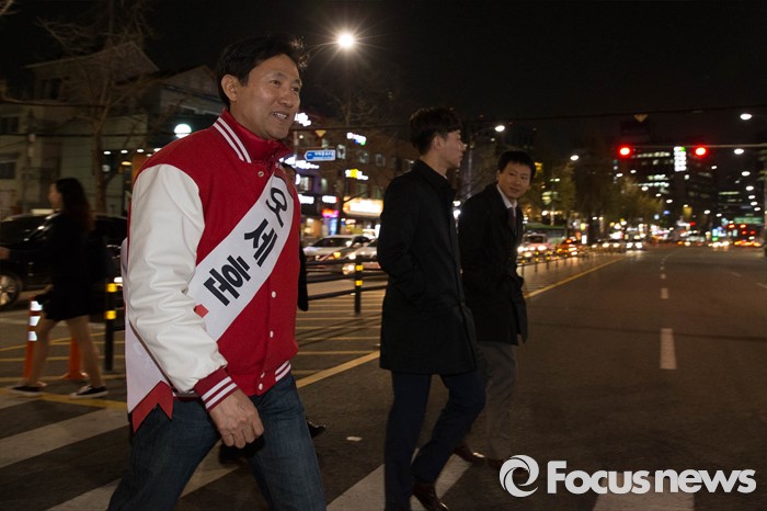 (서울=포커스뉴스) 20대 총선을 8일 앞둔 5일 오후 서울 종로구 통인시장 일대에서 오세훈 새누리당 종로구 후보가 퇴근길 선거유세를 하고 있다.