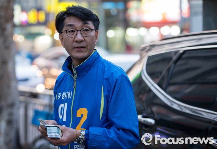 (서울=포커스뉴스) 5일 오후 서울 중구 신당역 인근에서 선거유세에 나선 이지수 더불어민주당 중구성동구을 후보가 퇴근길의 유권자에게 지지를 호소하고 있다.