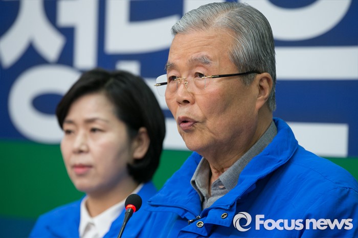 (서울=포커스뉴스) 김종인(오른쪽) 더불어민주당 비대위 대표가 6일 오전 서울 여의도 국회 당대표회의실에서 광주경제살리기 특별기자회견을 하고 있다. 왼쪽은 양향자 광주 서구을 후보.
