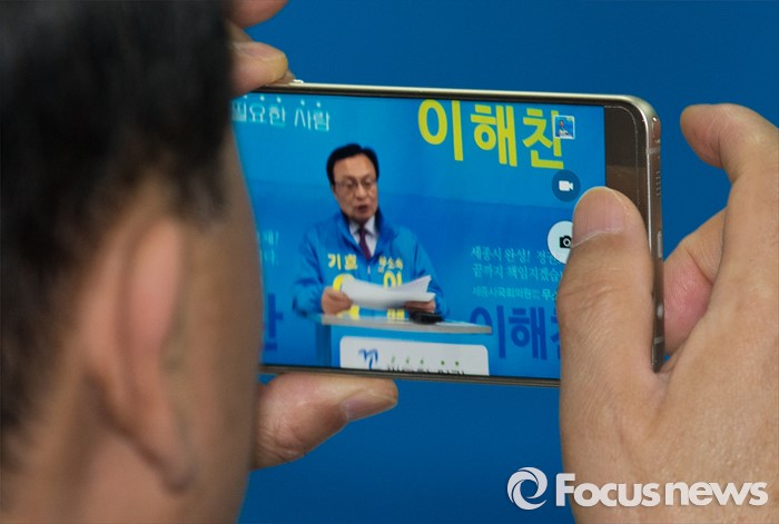 | △ 핸드폰으로 취재하는 취재진 |