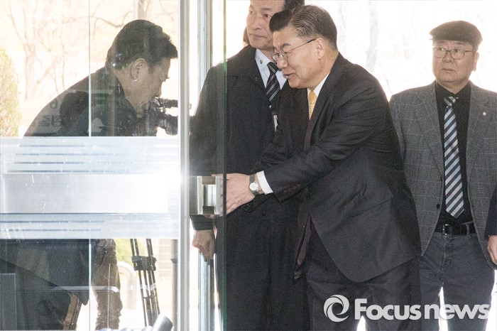 (서울=포커스뉴스) '용산 국제업무지구 개발사업'과 관련해 거액의 뒷돈을 챙긴 혐의로 구속영장이 청구된 허준영 전 코레일 사장이 6일 오전 서울 서초구 중앙지방법원에서 열린 영장실질심사에 참석하기 위해 법정으로 향하고 있다.