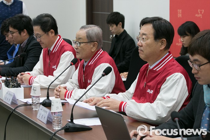 (서울=포커스뉴스) 강봉균(오른쪽 세번째) 새누리당 공동선대위원장이 6일 오전 서울 여의도 국회에서 경제정책 공약 5호를 발표하고 있다.