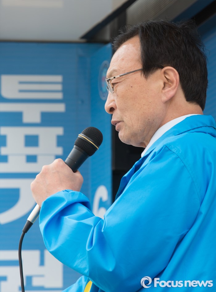 (세종=포커스뉴스) 이해찬 무소속 후보가 6일 오후 세종시 도담동 중앙타운 네거리에서 지지를 호소하고 있다.