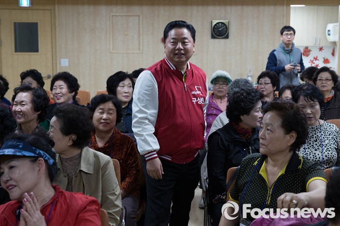 (서울=포커스뉴스) 총선을 일주일 앞둔 6일 오후 서울 강서구의 한 노래교실을 찾은 구상찬 새누리당 강서구갑 후보가 지지를 호소하고 있다.